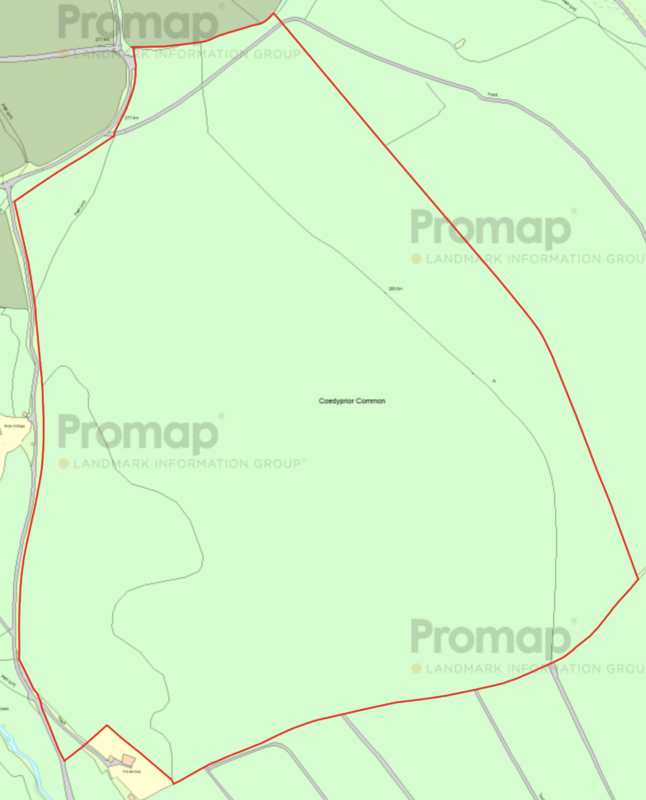 The single enclosure of upland pasture is in an elevated location and easily accessed via the council road from the popular Monmouthshire villages of Llanellen and Llanover. The land is predominately flat and falls away slightly on the eastern and western boundaries. It is currently covered in bracken with interspersed trees and scrub bushes around the edge.